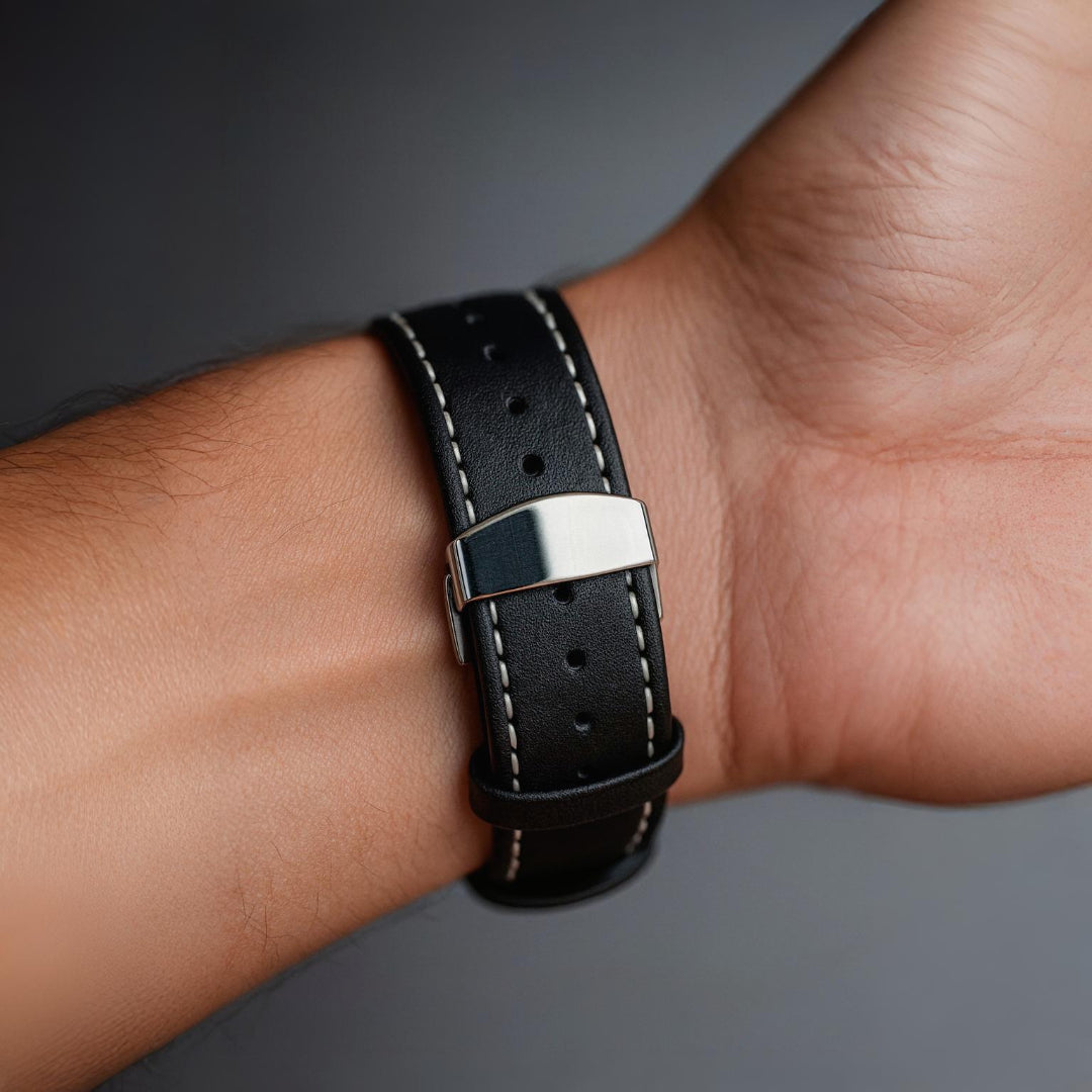 The butterfly clasp of the Oxford Strap ensures a perfect, secure fit while preserving the leather’s shape and preventing wear from repeated bending.