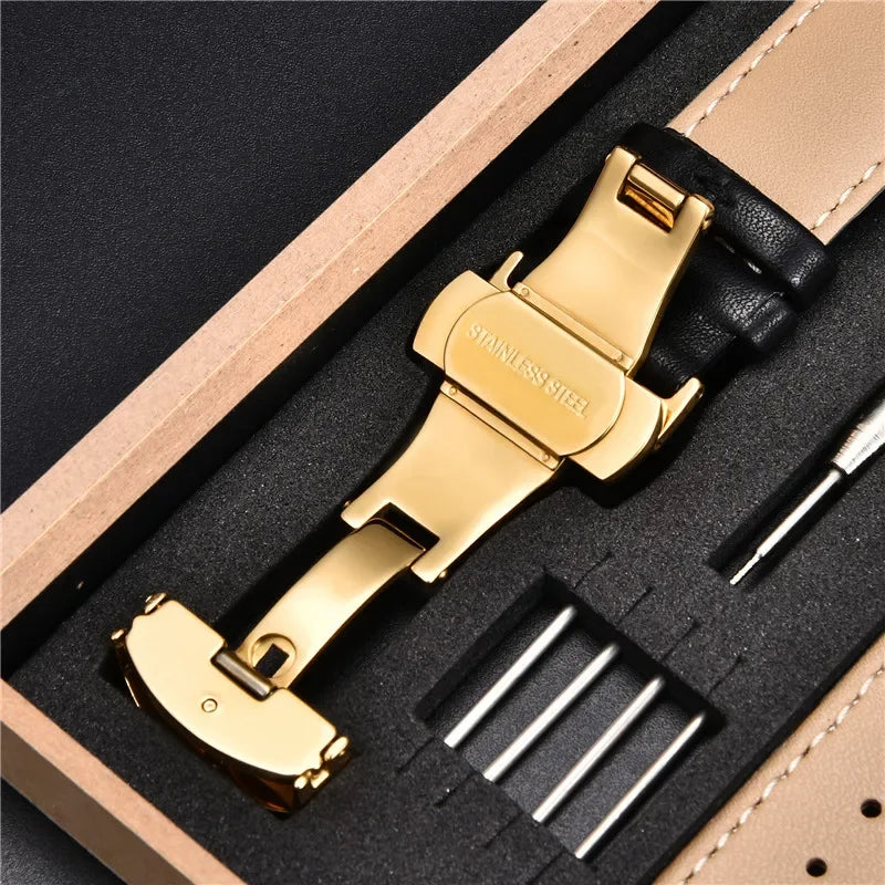 Available in a variety of colors, each strap is elegantly presented in a premium wooden box and comes with three replacement pins and an adjustment tool, showcasing Vallmor’s unwavering commitment to craftsmanship and excellence.