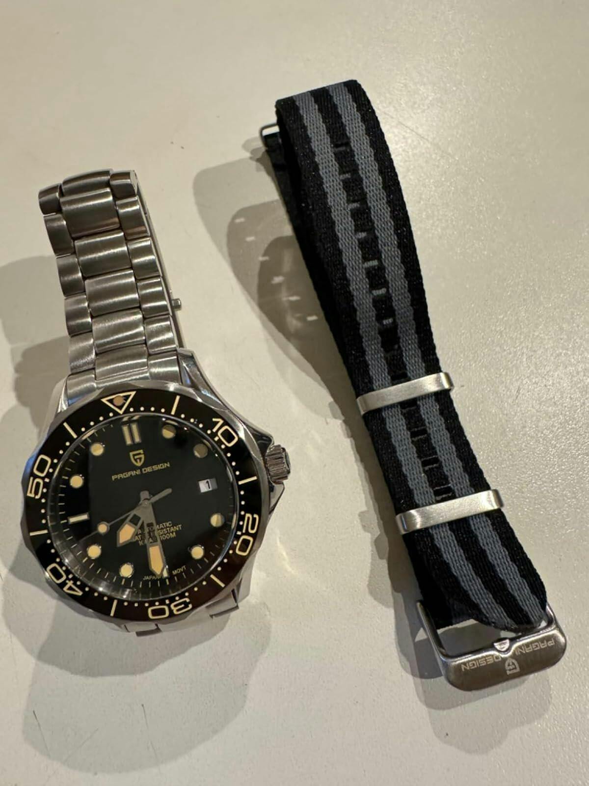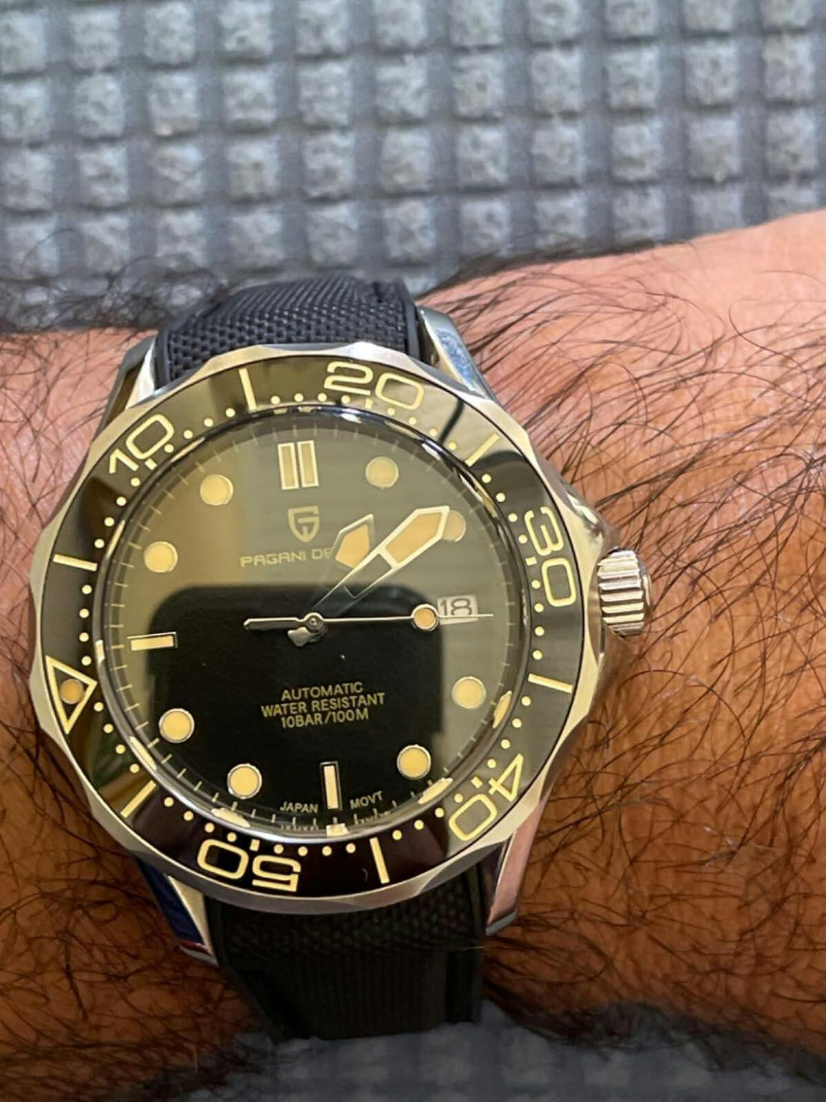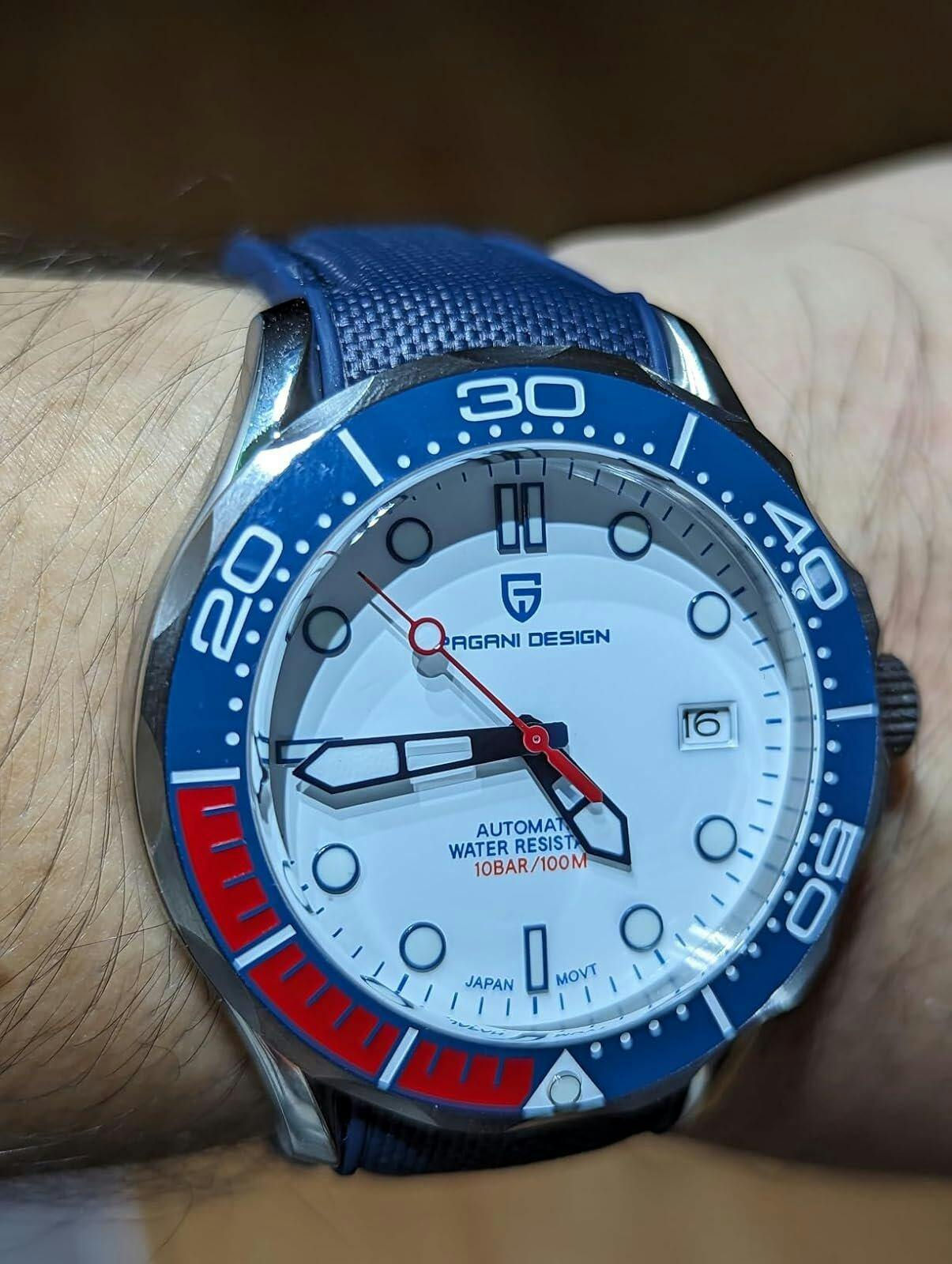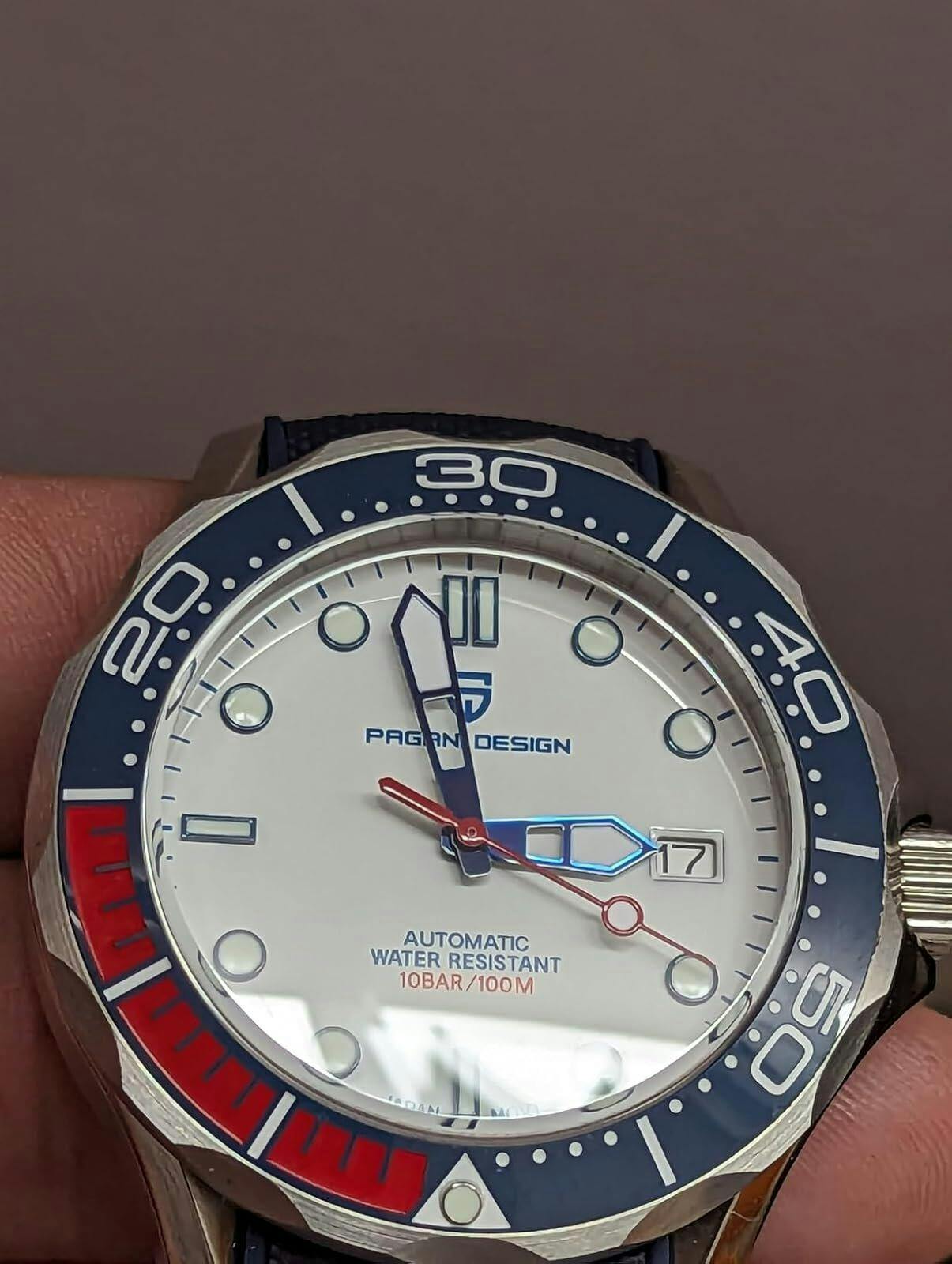 The Pagani Polaris is a modern men’s watch with a 42mm stainless steel case. Powered by a reliable Seiko NH35 Automatic movement, it offers precise timekeeping and smooth operation. The clean dial with luminous hands ensures easy readability. With100 meters water resistance, this sophisticated timepiece is perfect for everyday wear and various water activities.
