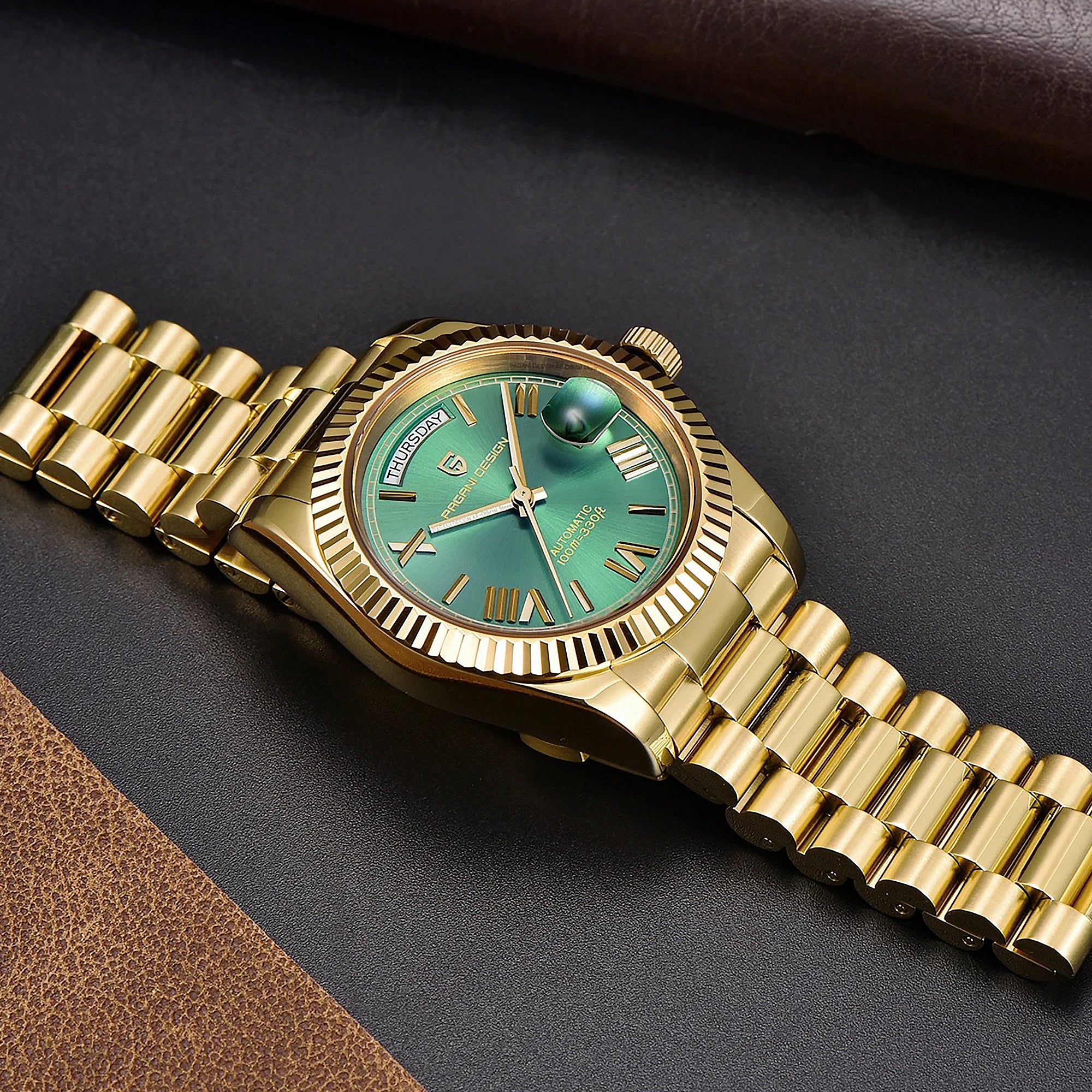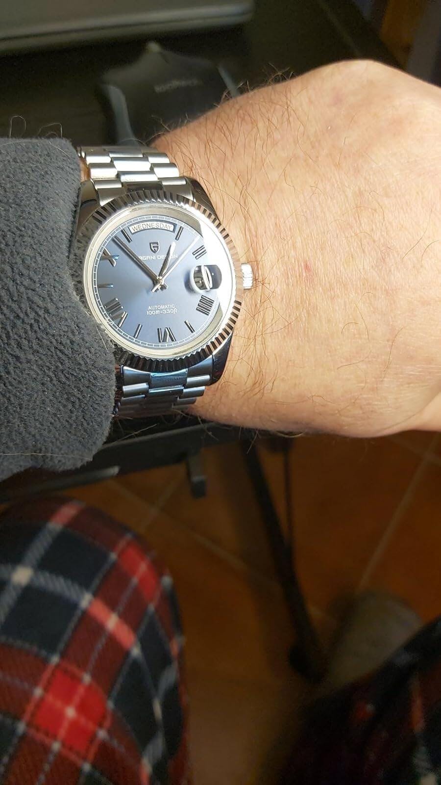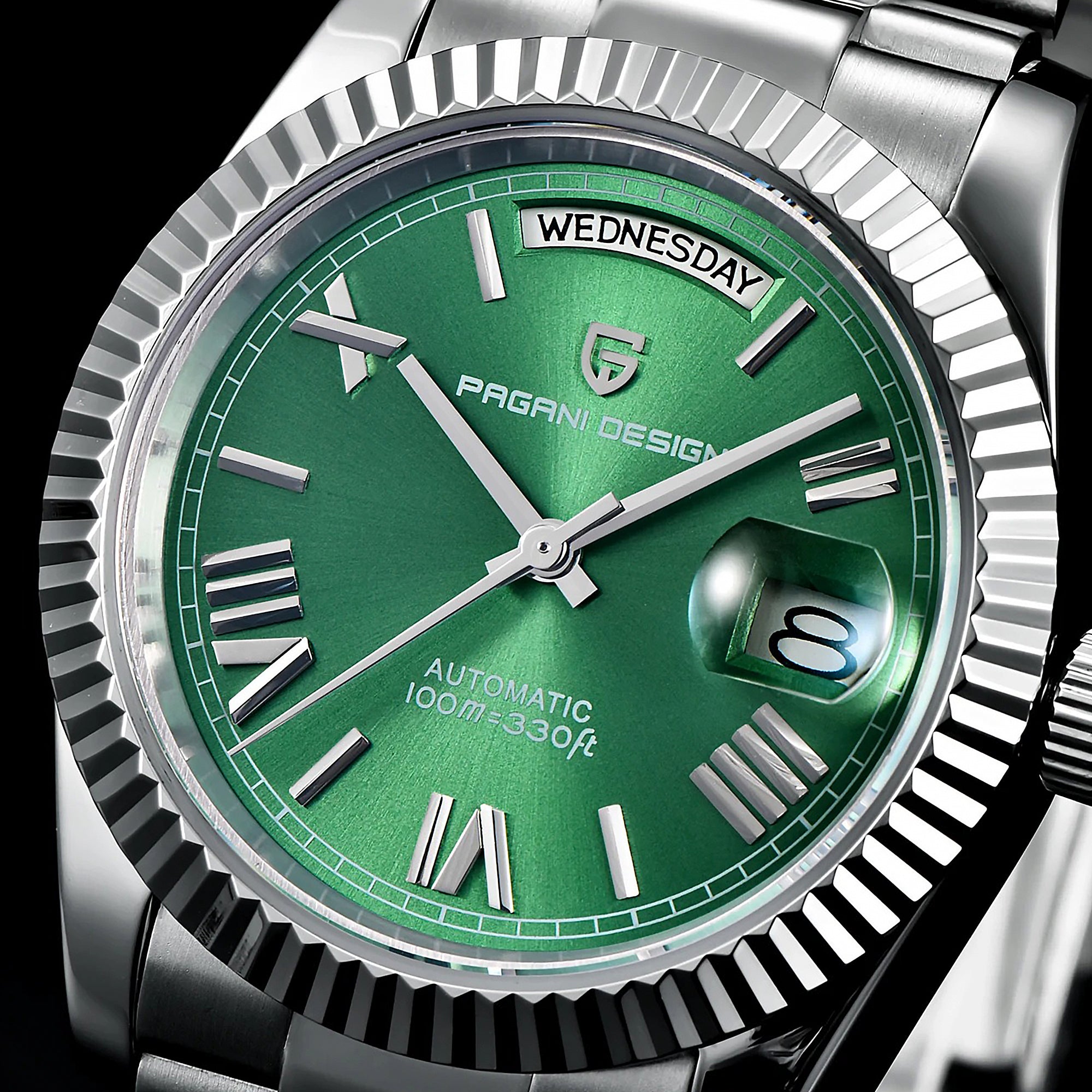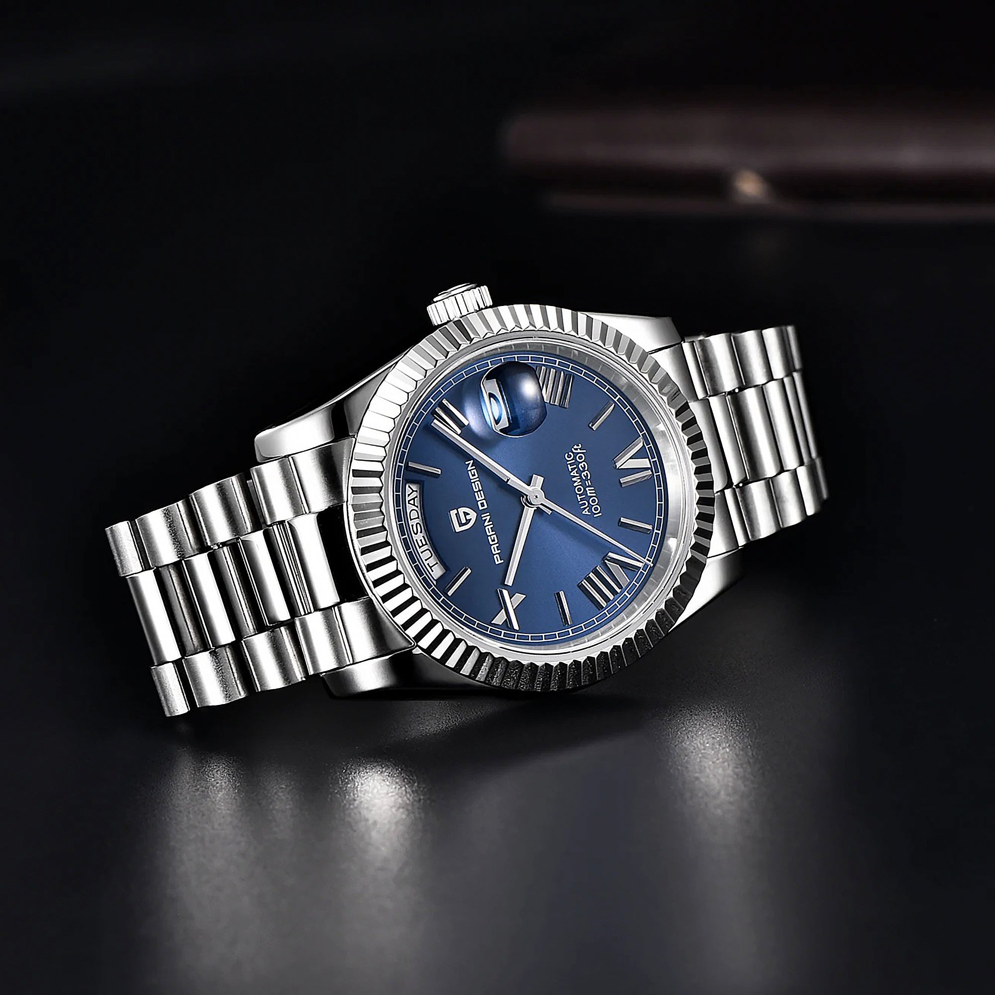 The Pagani Savile Prestige is the definition of masculine sophistication. With a 316L stainless steel case and anti-reflective sapphire crystal, it combines durability with a refined shine. Powered by the renowned Seiko NH36A or Seagull ST16 automatic movements, and offering up to a 42-hour power reserve, it delivers precision and style for any occasion. The Seiko version features a balanced 40 mm case, while the Seagull version comes in a 36 mm case, both with 10 ATM water resistance, making it the ideal companion for those who demand more from time.